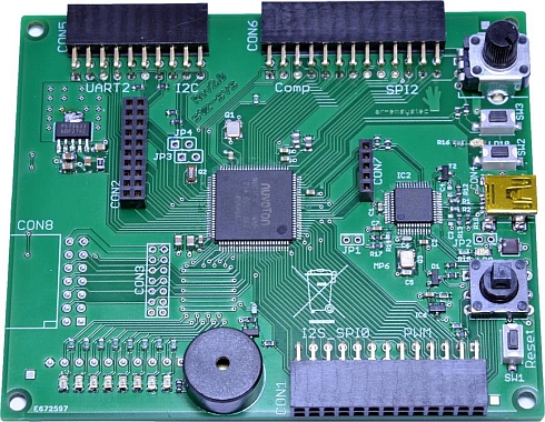- NUC130 / 48 MHz mit 3.3 V, 128 KB Flash, 16 KB SRAM